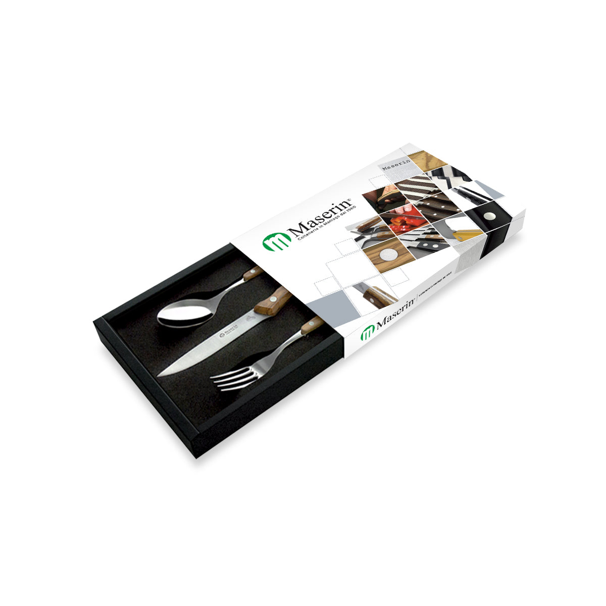 2053/OL - Set 3 pezzi cucchiai, coltello e forchetta con manico in Olivo